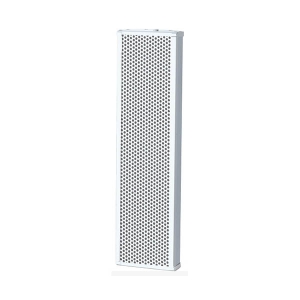 100V输入灵敏度为97db,100W功率输出,频响范围为140-15KHz,采用5个6.5寸喇叭,铝质箱体,金属网面,白色,外部尺寸为1168*227*125mm,重量为10.5kg.