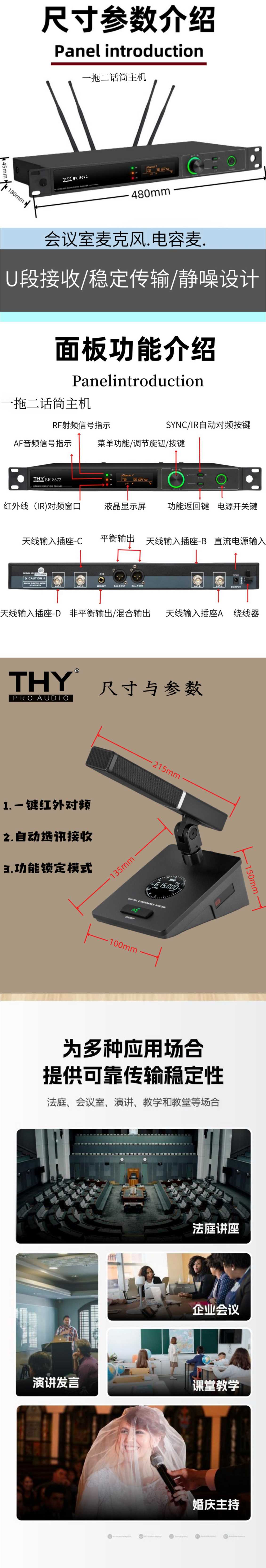 13.空扩使用范围150米;可任意选配手咪、头戴、领夹、会议