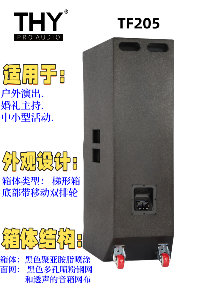 三分频三驱模式设计, 大号角远距离扩声,有效扩展了中频的工作带宽,优化了相位响应及瞬态特性。结合材料传输特性、频率交叠特性以及分频滤波等多种特性优化匹配,实现了与低频单元的结合,使整个扬声器系统的频响特性和相位响应大幅提升;内置高音托板从而保护号角与高音头远距离运输。在主观听感上,使系统的解析度和声像定位均取得上佳表现,是户外中小型流动性演出上佳选择。