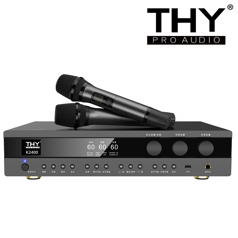 本机是一款以全数字DSP音频处理平台为基础的前后级带无线麦克风KTV合并功放,功能强大,体积紧凑、集人声效果、音频分频、参量均衡、压限、延时等多种常规产品的功能于一体,使用方便、配置灵活,广泛应用于私人会所/卡拉OK/KTV包房/多功能厅等专业娱乐场所。