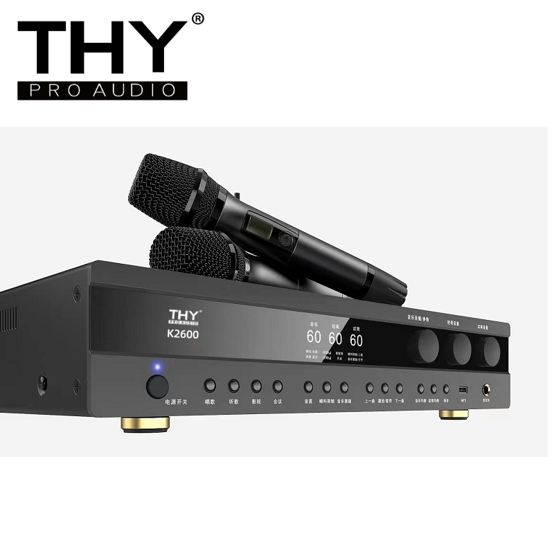 本机是一款以全数字DSP音频处理平台为基础的前后级带无线麦克风KTV合并功放,功能强大,体积紧凑、集人声效果、音频分频、参量均衡、压限、延时等多种常规产品的功能于一体,使用方便、配置灵活,广泛应用于私人会所/卡拉OK/KTV包房/多功能厅等专业娱乐场所。