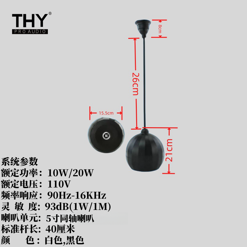 球形扬声器,ABS外形时尚美观,内置100V音频变压器